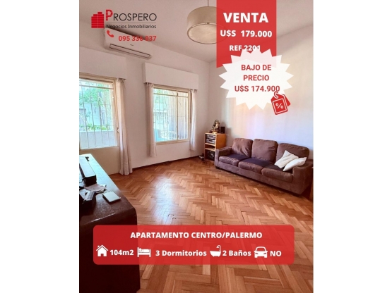 Amplio living-comedor al frente con salida a balcón, pasillo de distribución que conecta con los dormitorios, baño principal y cocina.