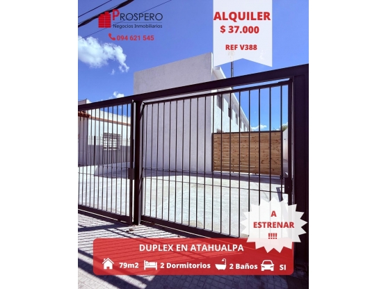 Dúplex a estrenar de 2 dormitorios y 2 baños, se accede por pasillo abierto.
