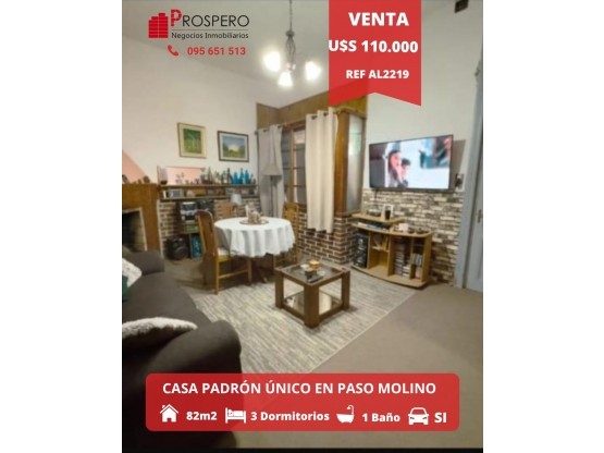 CASA PADRÓN ÚNICO CON 3 DORMITORIOS, GARAJE Y AZOTEA TRANSITABLE